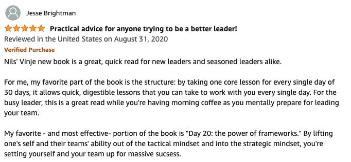 In 2020, I wrote the best-selling 30 Day Leadership Playbook-Your Guide To Becoming The Leader You Have Always Wanted To Be which I'd like to give to you absolute FREE.
